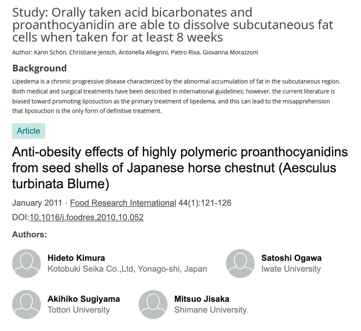 7: https://sciencecentral.net/health_sciences/study-orally-taken-acid-bicarbonates-and-proanthocyanidin-are-able-to-dissolve-subcutaneous-fat-cells-when-taken-for-at-least-8-weeks/